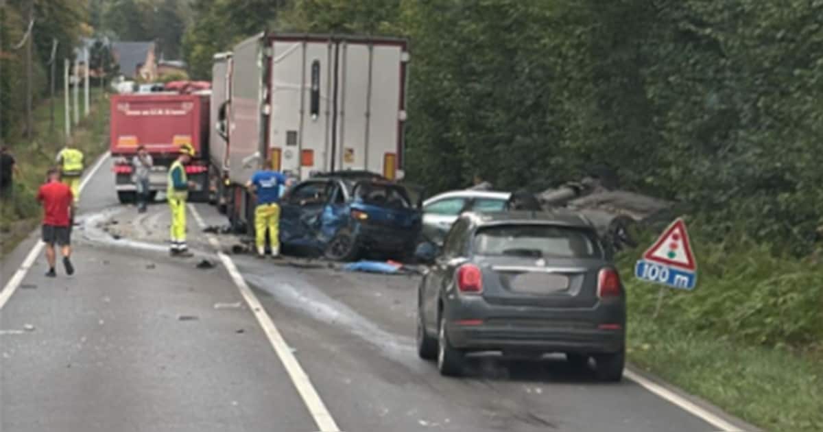 Chauffeur van vrachtwagen rijdt in op wachtende voertuigen aan stoplicht: dode en acht gewonden in Wallonië