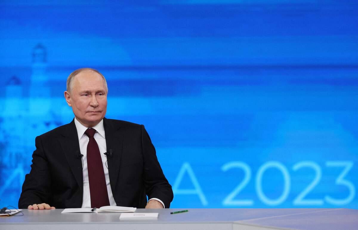 Poutine désarçonné face à son double virtuel lors d'une séance de questions-réponses