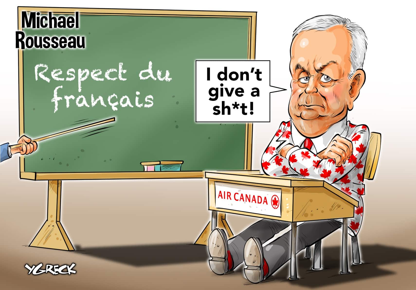 La caricature d’Ygreck en vidéo: le respect du français de Michael Rousseau
