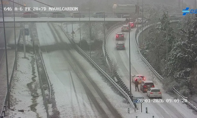 La nieve bloquea varias carreteras de la sierra de Madrid y es obligatorio el uso de cadenas en todos los puertos