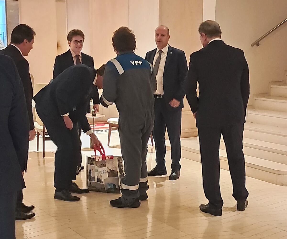 Milei se reúne con Abascal en Madrid vestido con un mono de trabajo de la petrolífera argentina YPF