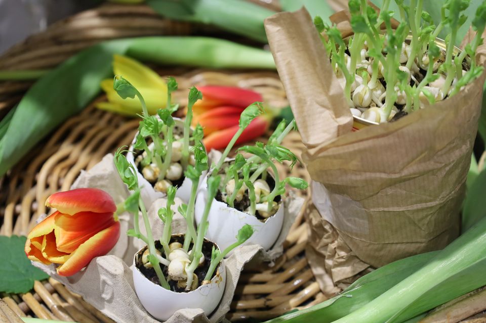 Pääsiäiskoriste ruokaherneistä viikossa – versot kasvavat munankuorissa