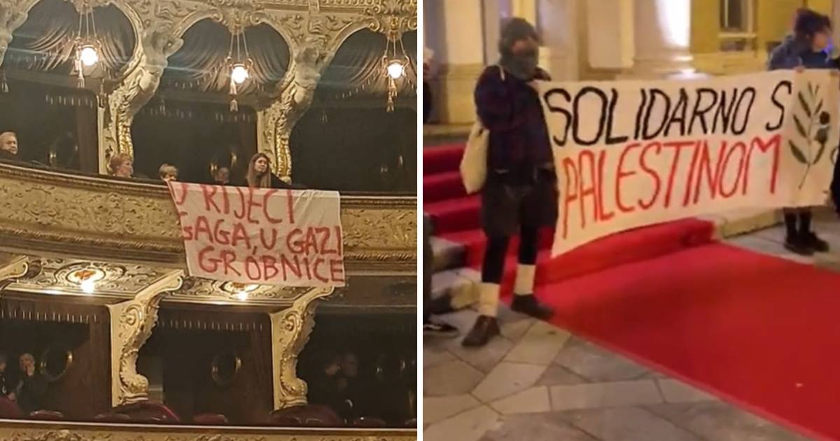 Prosvjednici upali u riječki HNK, zviždali, razvukli transparent...