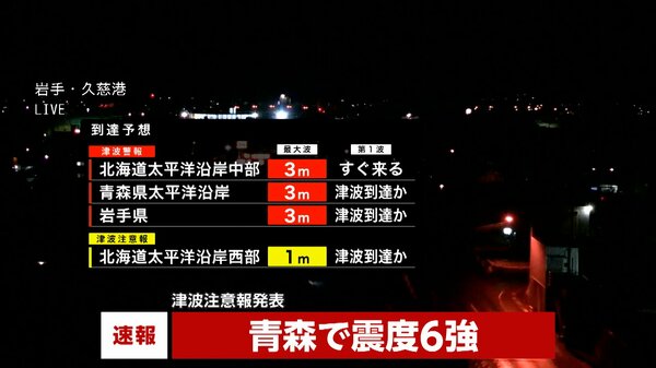 【速報】北海道太平洋沿岸中部、青森県太平洋沿岸、岩手県に津波警報 今すぐ逃げてください