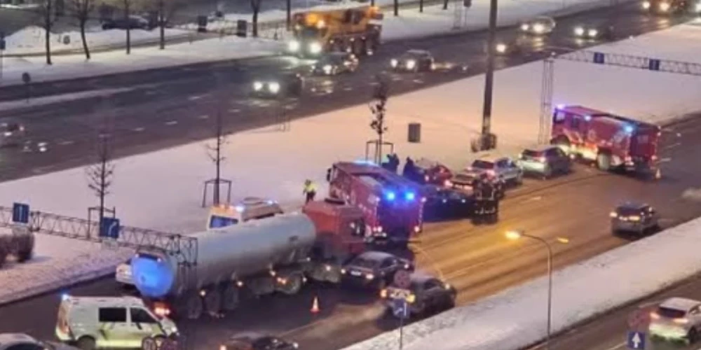 Uz Krasta ielas Rīgā notikusi astoņu transportlīdzekļu sadursme