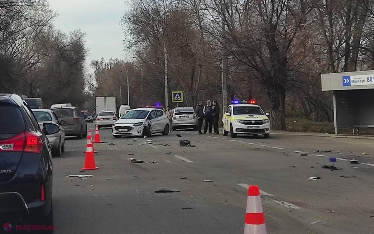 VIDEO, FOTO // Accident groaznic în capitală, cu implicarea a trei automobile și a unui camion de mare tonaj. Impactul a fost atât de puternic, încât a fost doborât un copac gros