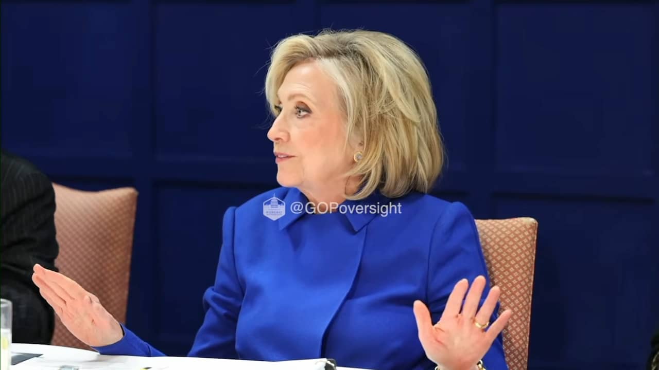 Video | Hillary Clinton loopt boos weg tijdens Epstein-verhoor na gelekte foto