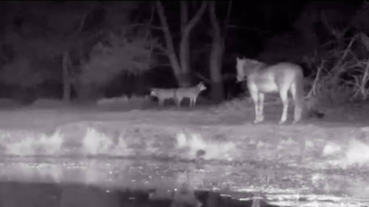 Video | Wildcamera filmt hoe wolven en paarden elkaar naderen op Veluwe