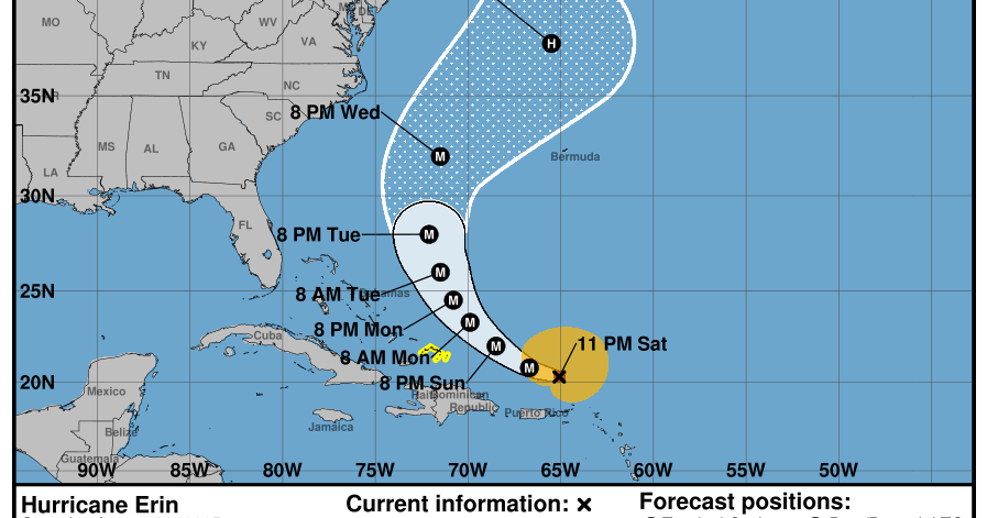 Huracán Erin continúa con vientos de 160 mph y amenaza con fuertes lluvias a la Isla