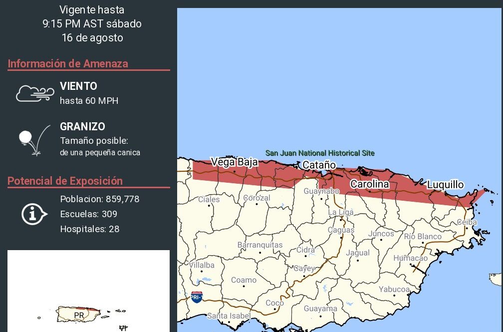 Emiten AVISO de tormenta severa; vientos hasta de 60MPH