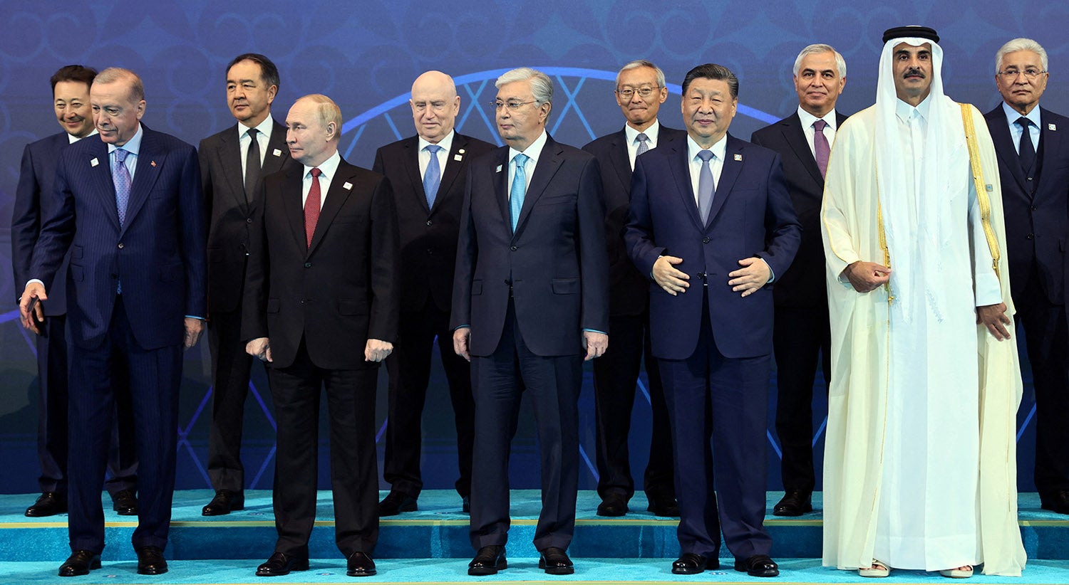 Líderes dos países da Organização de Cooperação de Xangai reunidos no Cazaquistão