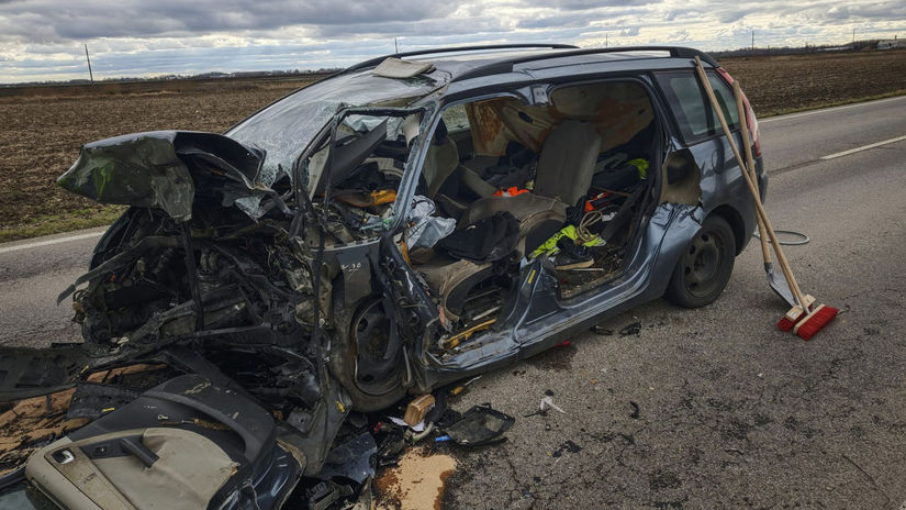 FOTO: Z auta zostal vrak: desivý pohľad po čelnej zrážke pri Leviciach