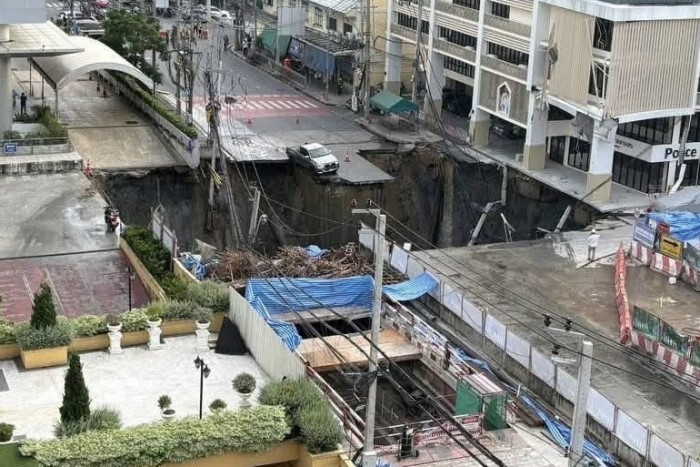 Huge subsidence on Samsen Rd in Bangkok