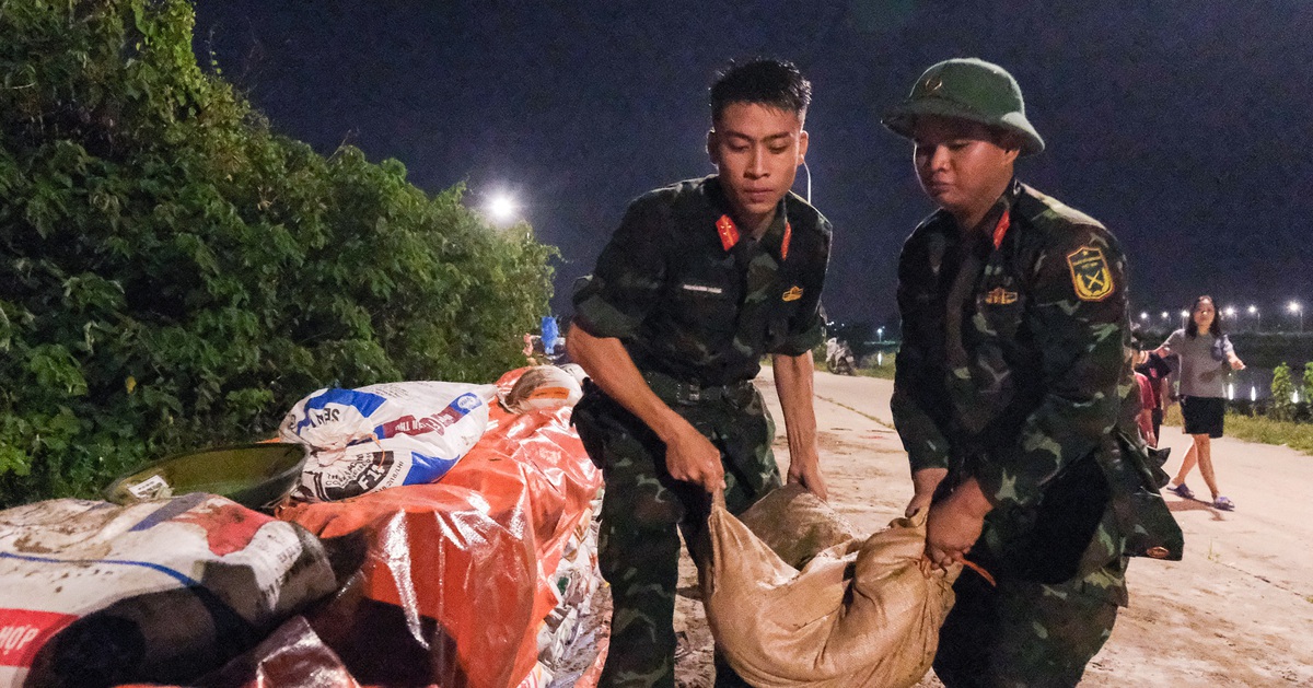Già trẻ gái trai ở Bắc Ninh tình nguyện cùng bộ đội, công an đắp đê ngăn nước lũ sông Cầu